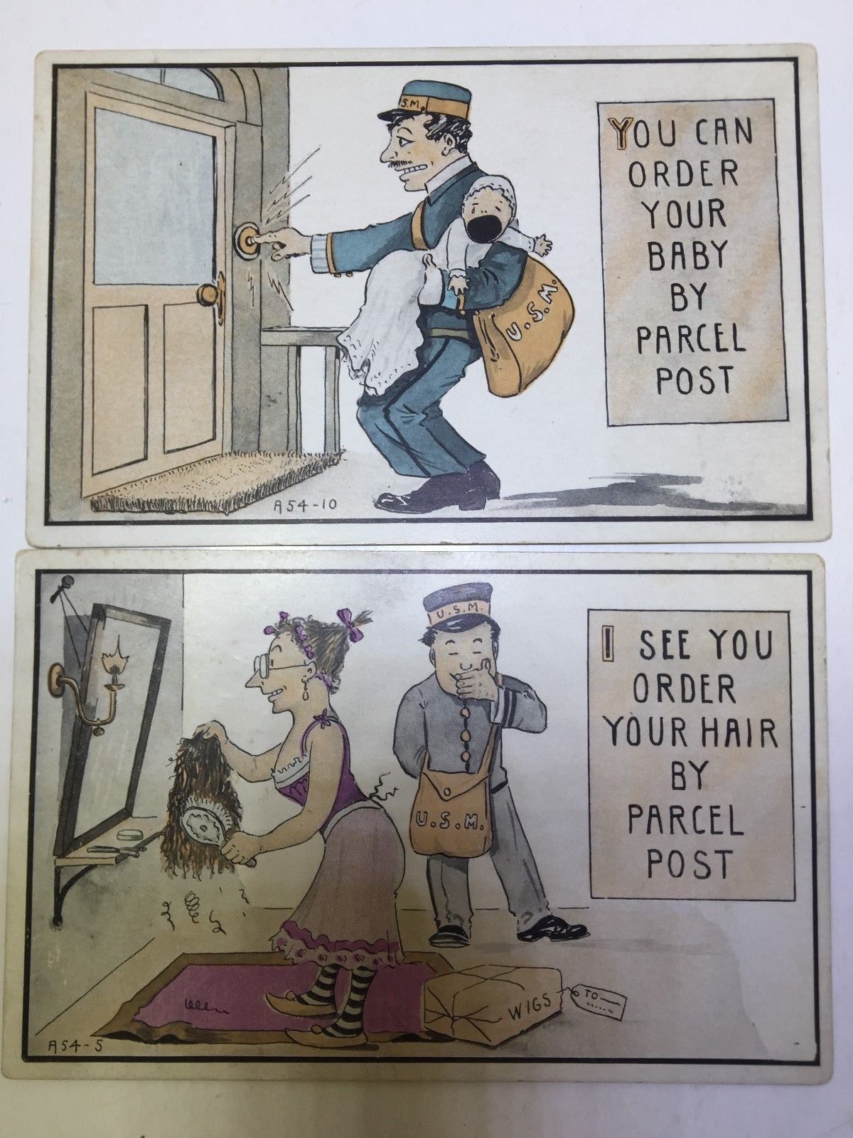 Title (ebay affiliate link): Vintage "Parcel Post" mailman postcards, lot of 2, Series A-5 & 10, posted 1913