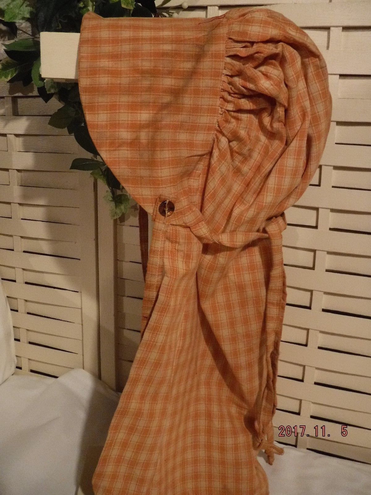 Title (ebay affiliate link): primitive tea stained prairie bonnet homespun gold check cotton