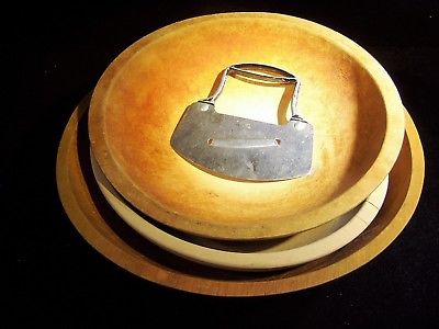 Title (ebay affiliate link): 3 PRIMITIVE DOUGH BOWLS 13.5" Unmarked & 2- 11" Marked Munising + Dough Knife