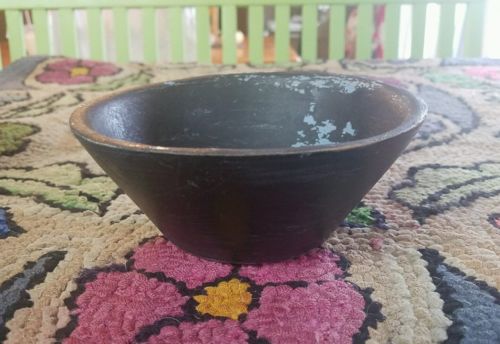 Title (ebay affiliate link): Primitive Small Wood Bowl in Old Paint Black Blue Chippy Farmhouse Country Decor