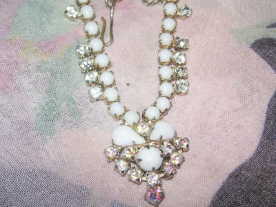 FABULOUS MILK GLASS RHINESTONE NECKLACE CHOKER VINTAGE