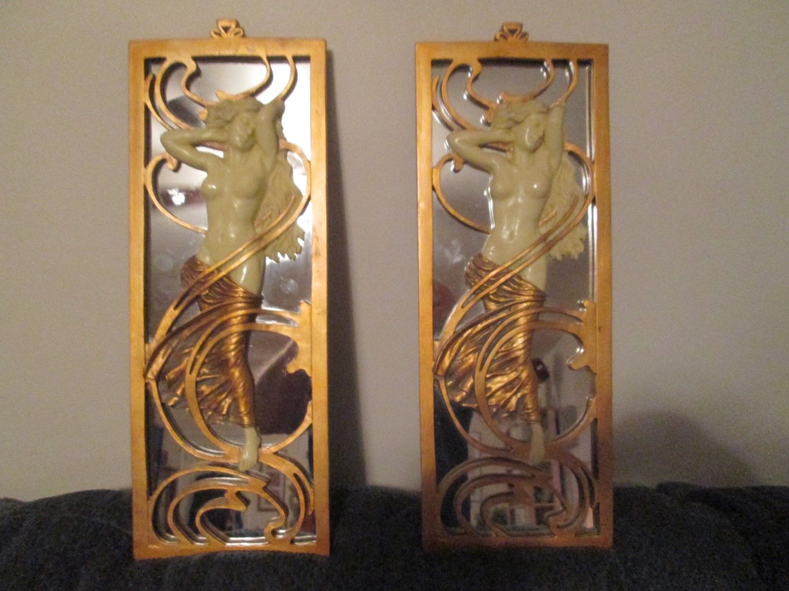 Title (ebay affiliate link): BEAUTIFUL PAIR OF ART DECO~ART NOUVEAU NUDE WOMAN MIRRORED SYROCCO WALL PLAQUES