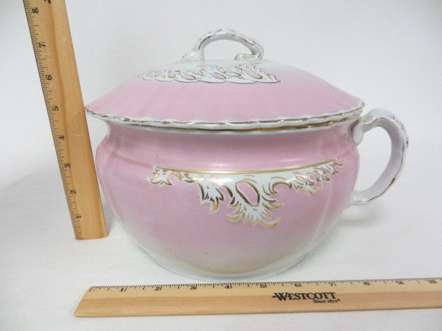 Title (ebay affiliate link): Royal Ironstone China W.H. Grindley & Co England Pink & White Chamber Pot W/Lid
