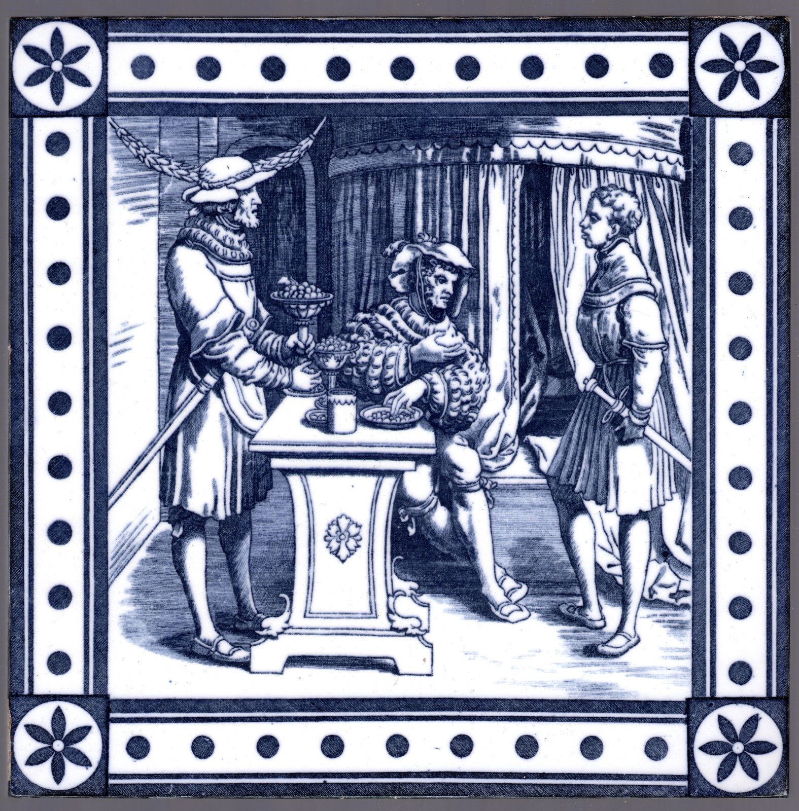 The Albrecht Durer Series - c.1878 - 8" x 8" - Blue Transfer - Antique Tile