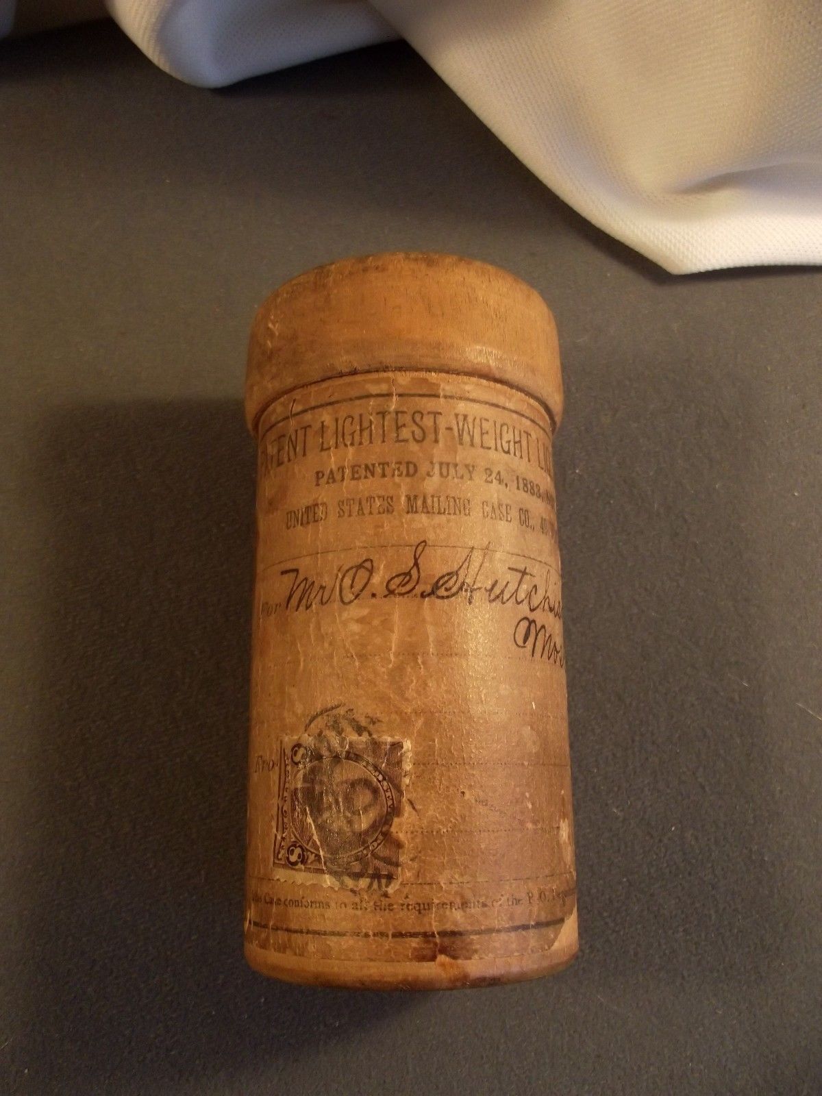 Antique Wood Mailing Container 1886 Round with Screw top CIVIL WAR era