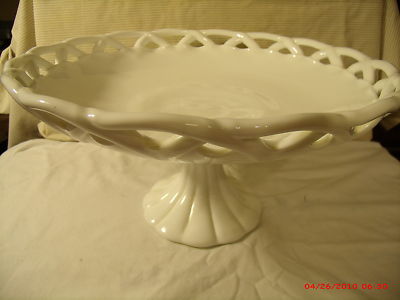 Vintage Milk Glass Tall Footed Cake Stand~ Lattice Edge