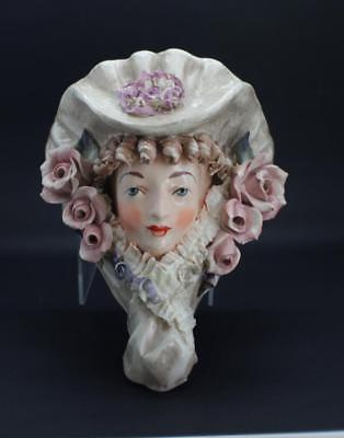 RARE VINTAGE CORDEY PORCELAIN YOUNG LADY in LACE HEAD WALL POCKET VASE 881 37