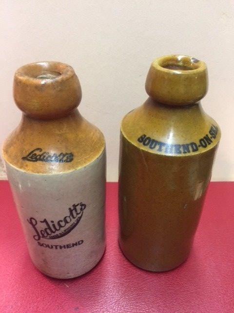 Antiques,Bottles,(2),Stoneware, Ledicott''s,Ginger Beer,signed,1850-1899, England