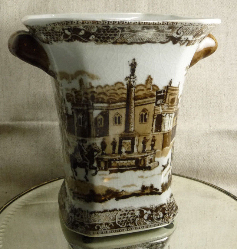 Title (ebay affiliate link): Vintage Porcelain Brown Transfer Ware Vase Scenic Pastoral Transferware Marked