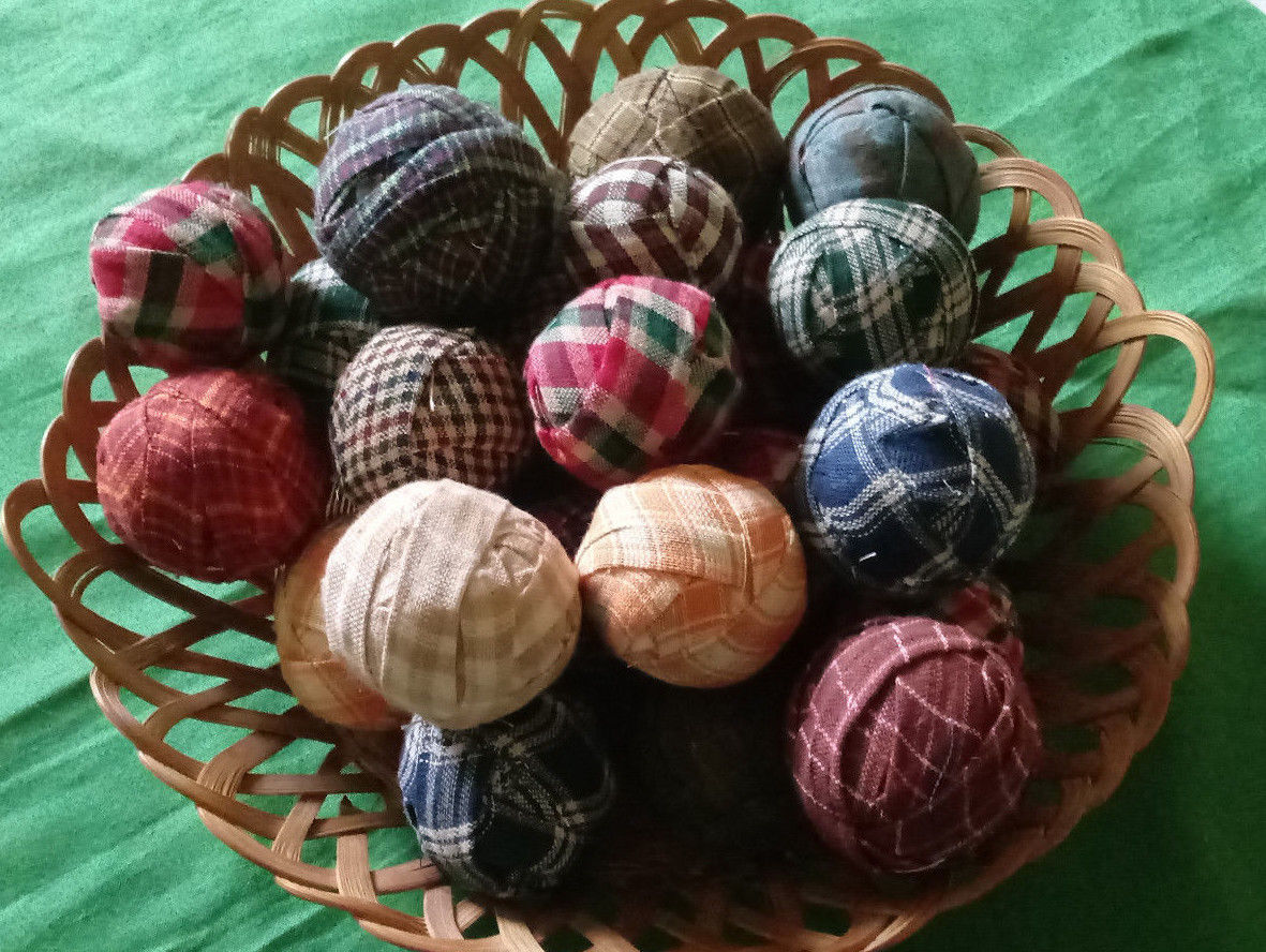 Title (ebay affiliate link): 2 Dozen Homespun Rag Balls Bowl Fillers/ Ornies