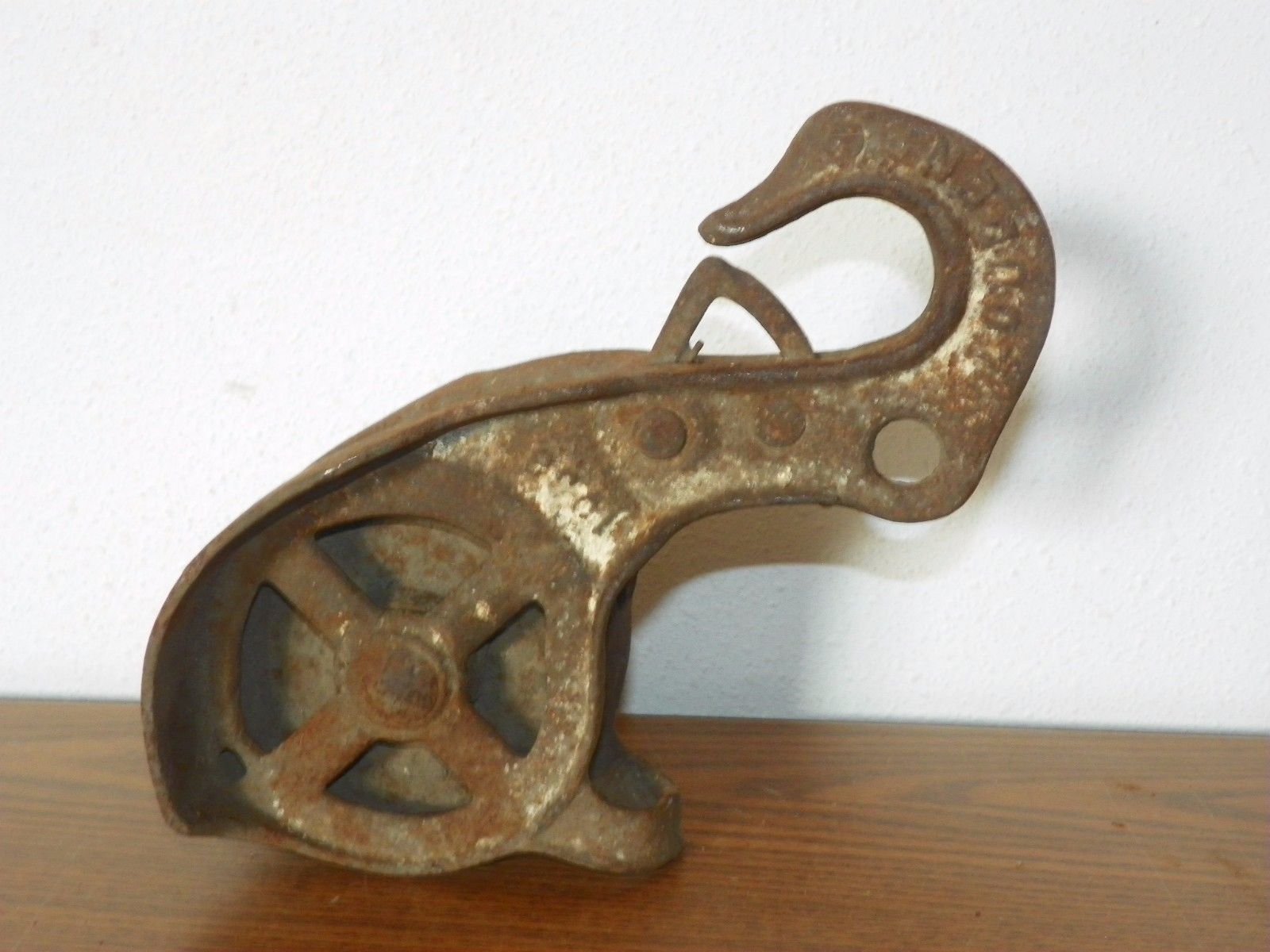 Title (ebay affiliate link): Vintage LOUDEN 10" Cast Iron Wheel Farm Barn Hay Trolley Pulley w/ Spring Lock