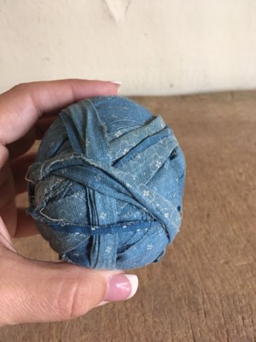 Title (ebay affiliate link): Early Antique Blue Calico Handmade Large Ragball Textile AAFA