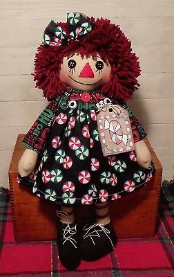 Title (ebay affiliate link): Primitive Handmade CHRISTMAS RAGGEDY ANN DOLL PEPPERMINT CANDY Dress Folk Art