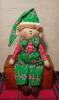 Title (ebay affiliate link): Primitive Handmade CHRISTMAS RAGGEDY ELF DOLL HO HO HO Overalls Folk Art