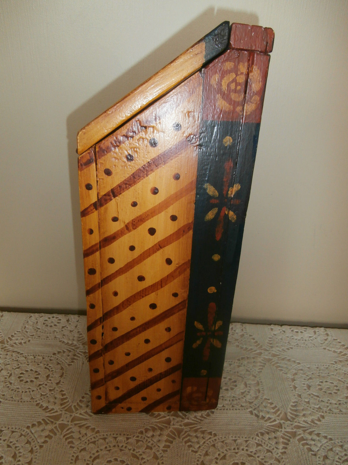 Title (ebay affiliate link): FOLK ART~HAND PAINTED~WOODEN CANDLE STORAGE BOX~SIGNED/DATED~PRIMITIVE~UNIQUE