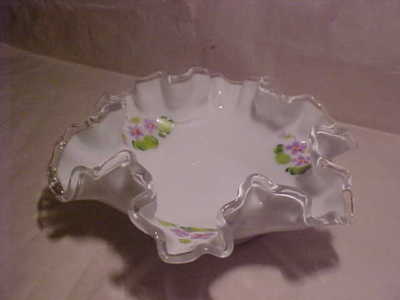 OLD FENTON MILK GLASS VIOLETS IN THE SNOW CANDY BOWL