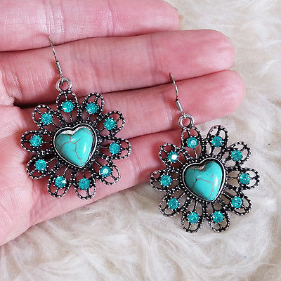 Title (ebay affiliate link): Vintage Womens Antique-Black Color Hollow Flower Blue Heart Dangle Hook Earrings