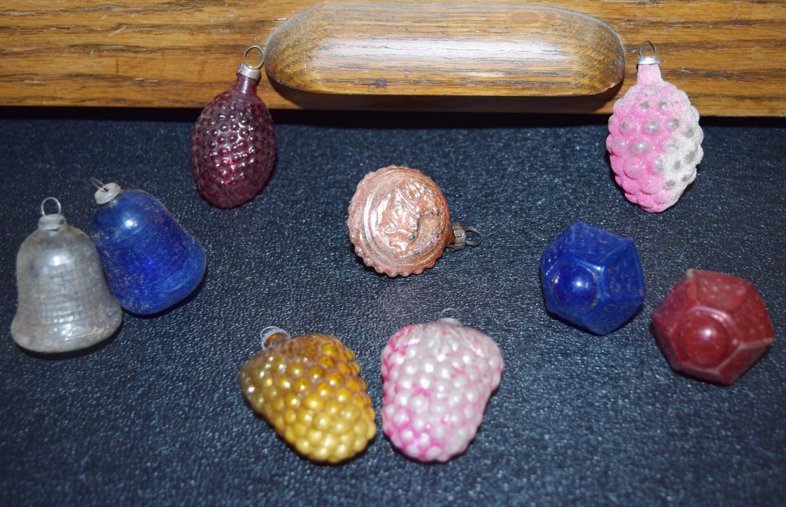 Vintage Small Mercury Glass Christmas Feather Tree Ornaments Berries Grape Bells