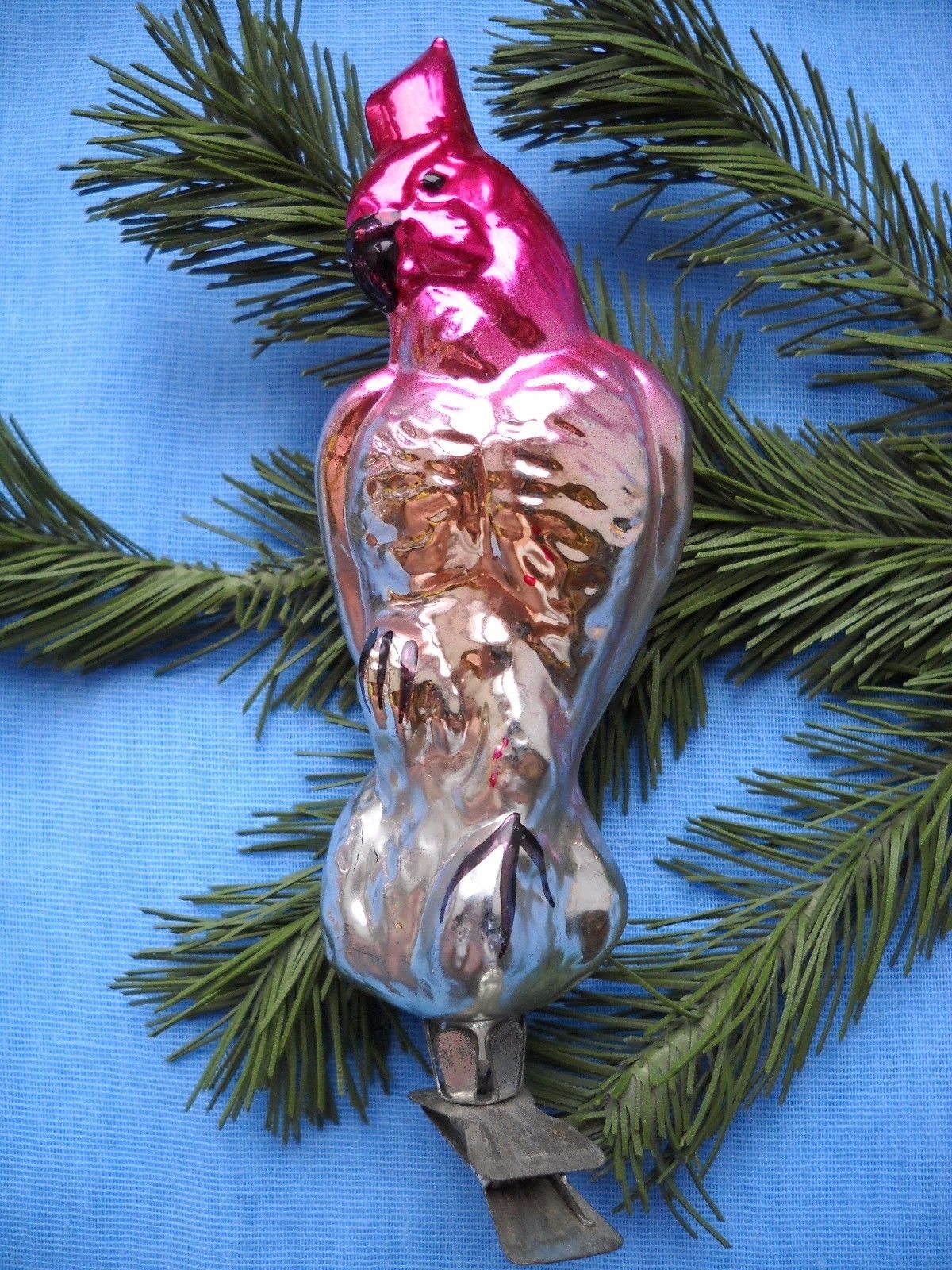 OLD RUSSIAN GLASS CHRISTMAS ORNAMENT PARROT