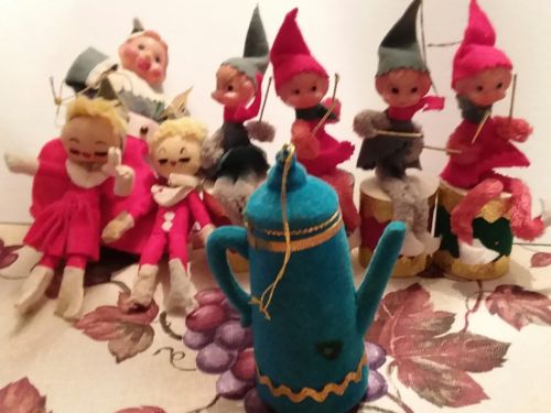 Title (ebay affiliate link): Christmas ornaments Vintage Flocked Elves coffee pot