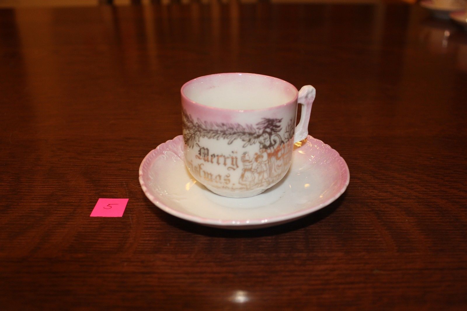 ANTIQUE CHILD''S MERRY CHRISTMAS CUP & SAUCER, SANTA VISITING BOY & GIRL,GERMANY