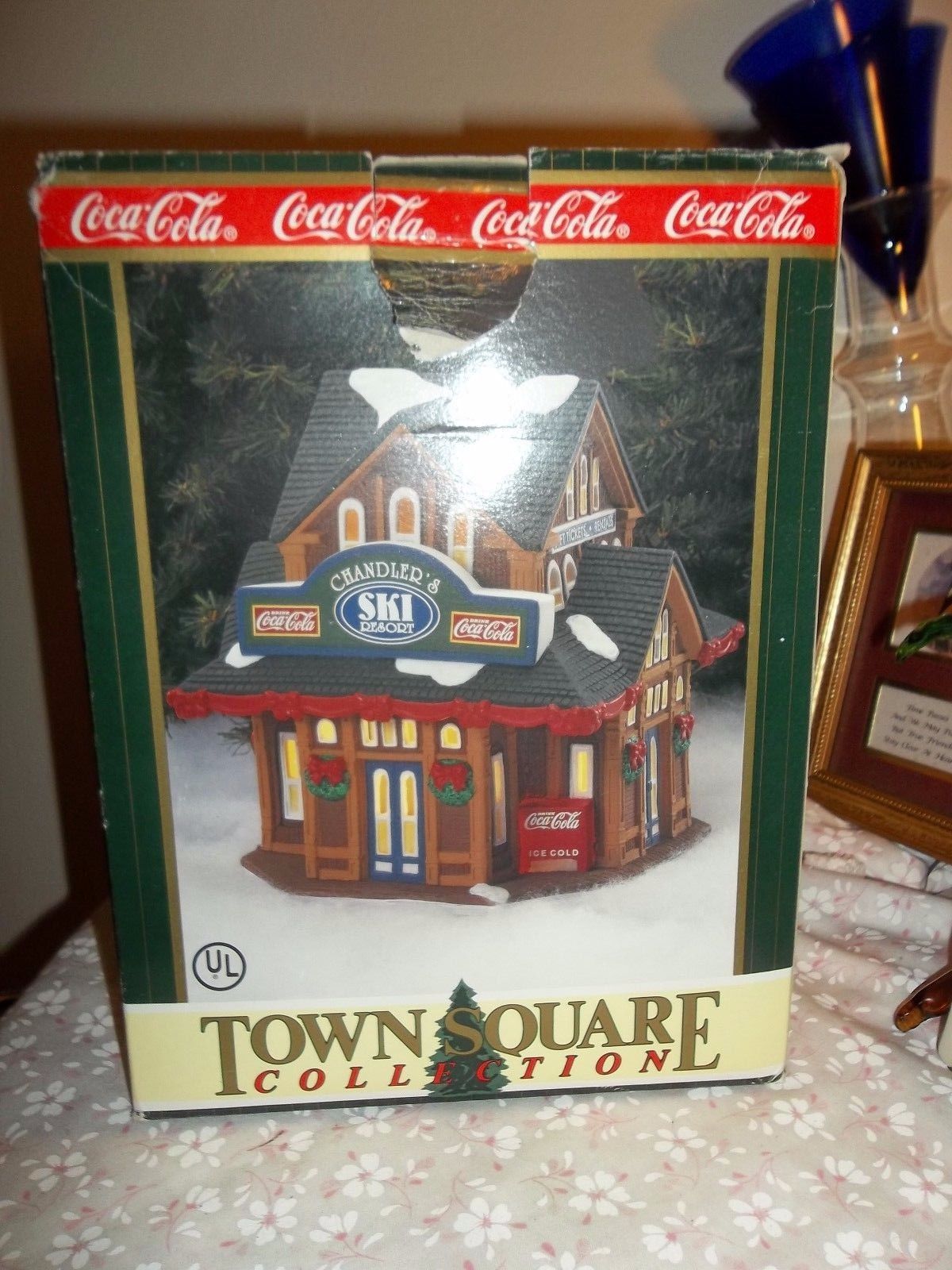 Title (ebay affiliate link): COCA COLA VINTAGE TOWN SQUARE COLLECTION CHANDLERS SKI RESORT LIGHTS UP