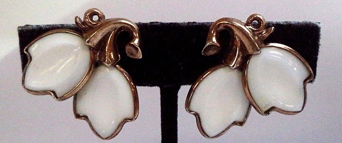 Title (ebay affiliate link): STUNNING VINTAGE SIGNED CROWN TRIFARI POURED MILK GLASS CLIP 1" EARRINGS 7928G
