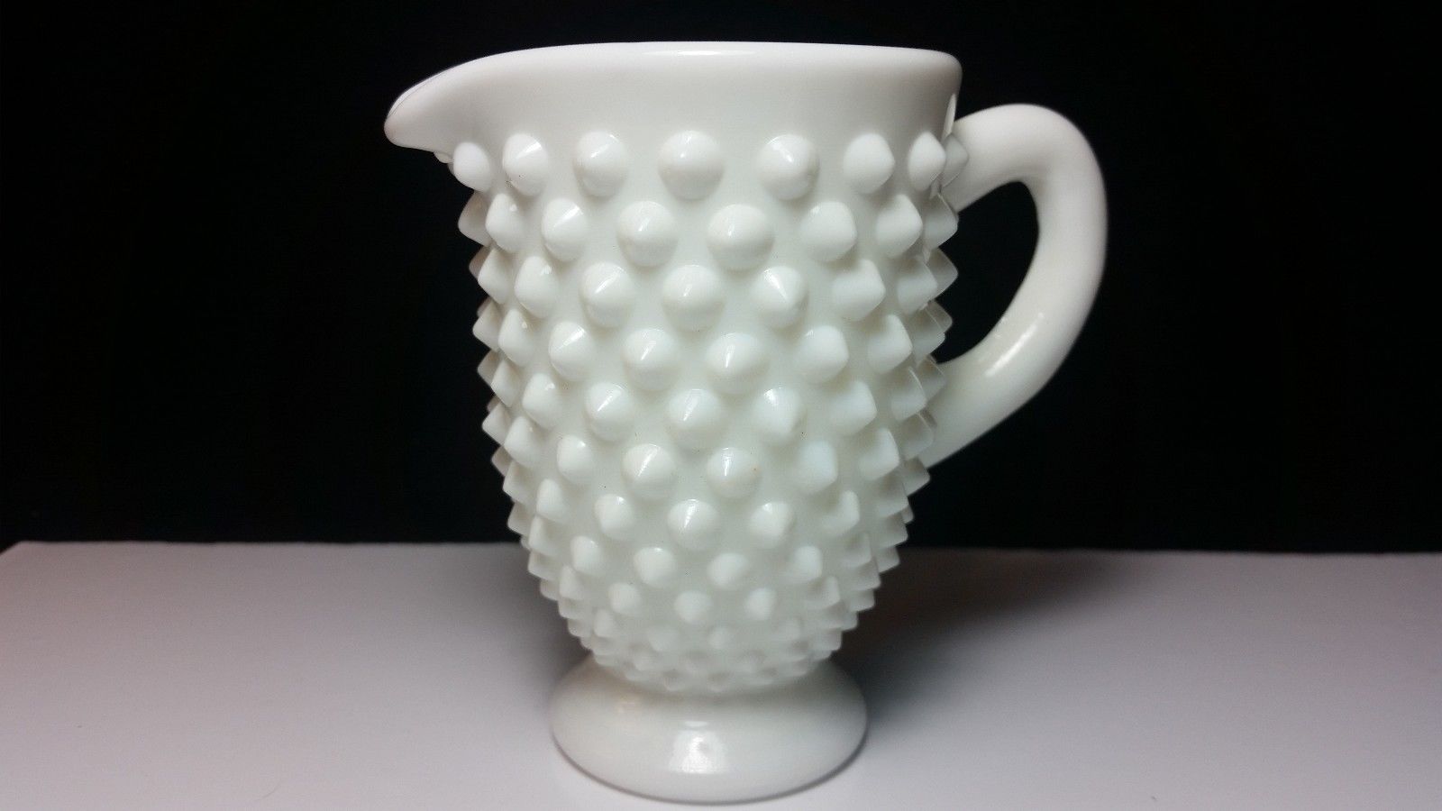 White Milk Glass Hobnail 3 1/2" Tall Creamer