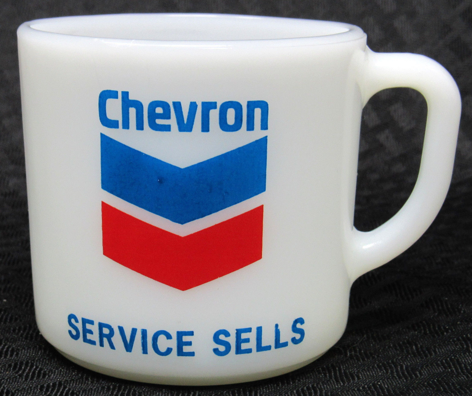 Title (ebay affiliate link): CHEVRON CORP. Stackable Milk Glass ''Service Sells'' Campaign Coffee Mug Promo