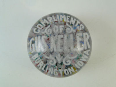 Antique Burlington IA Art Glass Paperweight Advertising