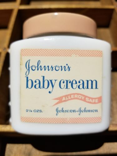 Title (ebay affiliate link): Vtg Rare 50''s Johnson and Johnson Baby Cream Milk Glass Jar 2 1/8oz Advertising