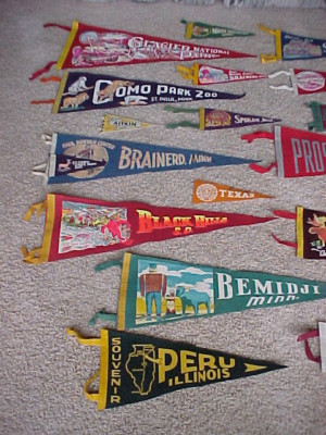 LOT 20 - MISC VINTAGE PENNANTS - MN - IL - SD - TX - MT