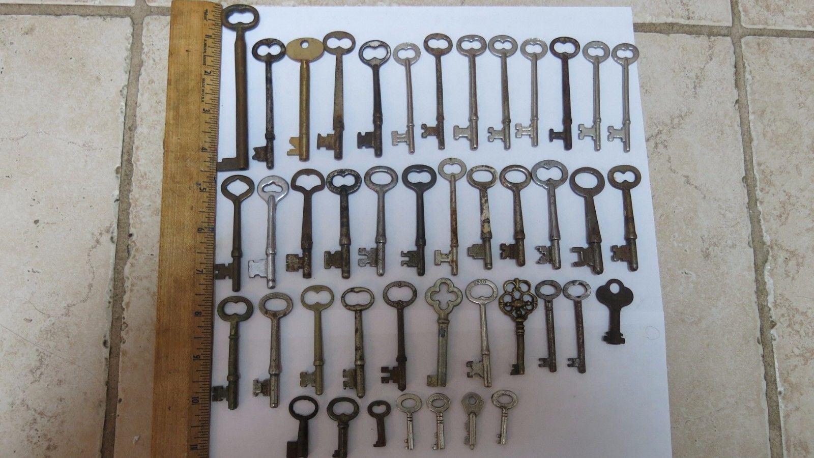 Title (ebay affiliate link): Lot of 43 Antique Skeleton Furniture Cabinet Flat Keys Steampunk