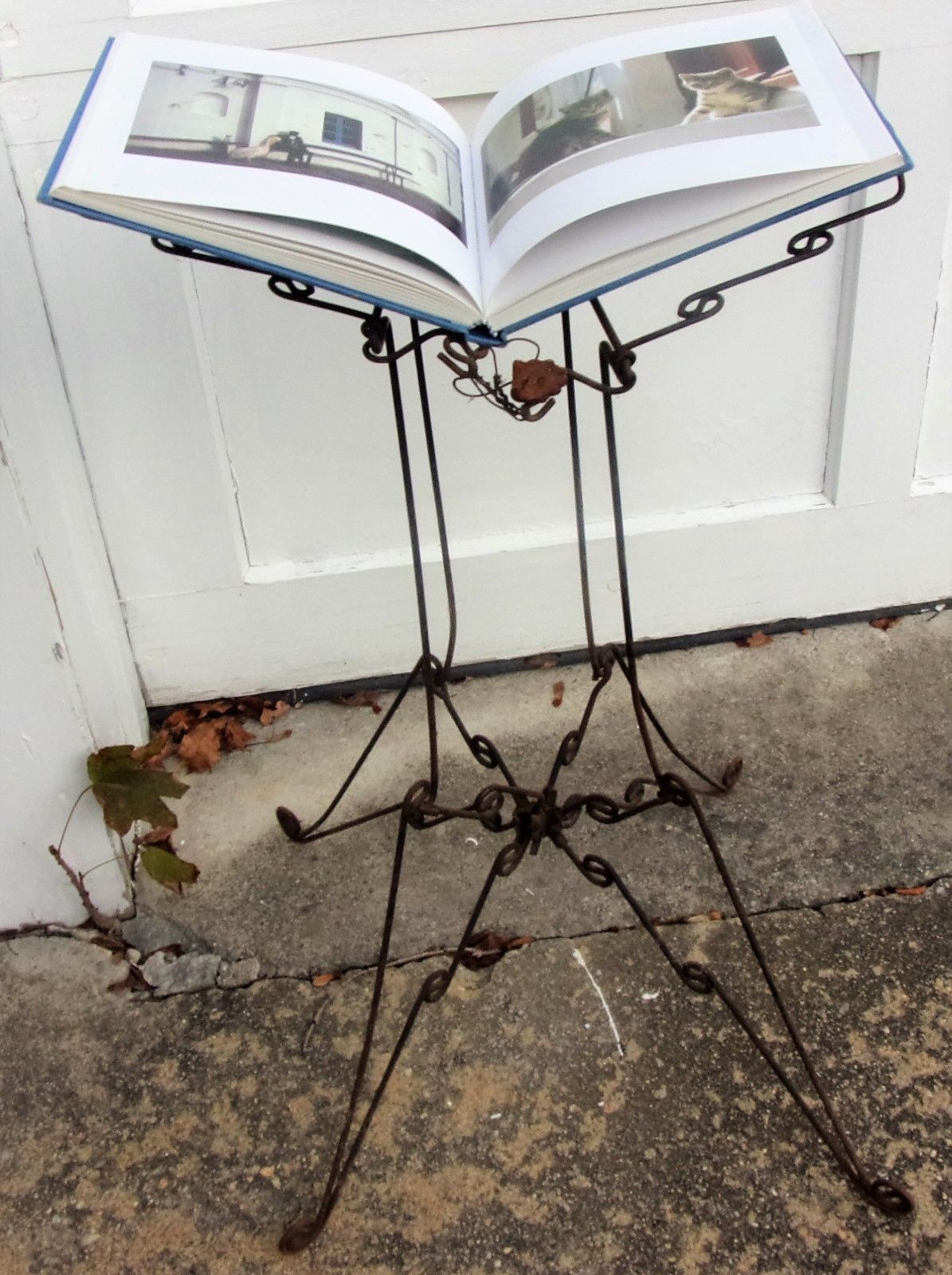 Title (ebay affiliate link): Antique Victorian RARE Iron Metal Book Stand Bible Holder Wire Work Foldable