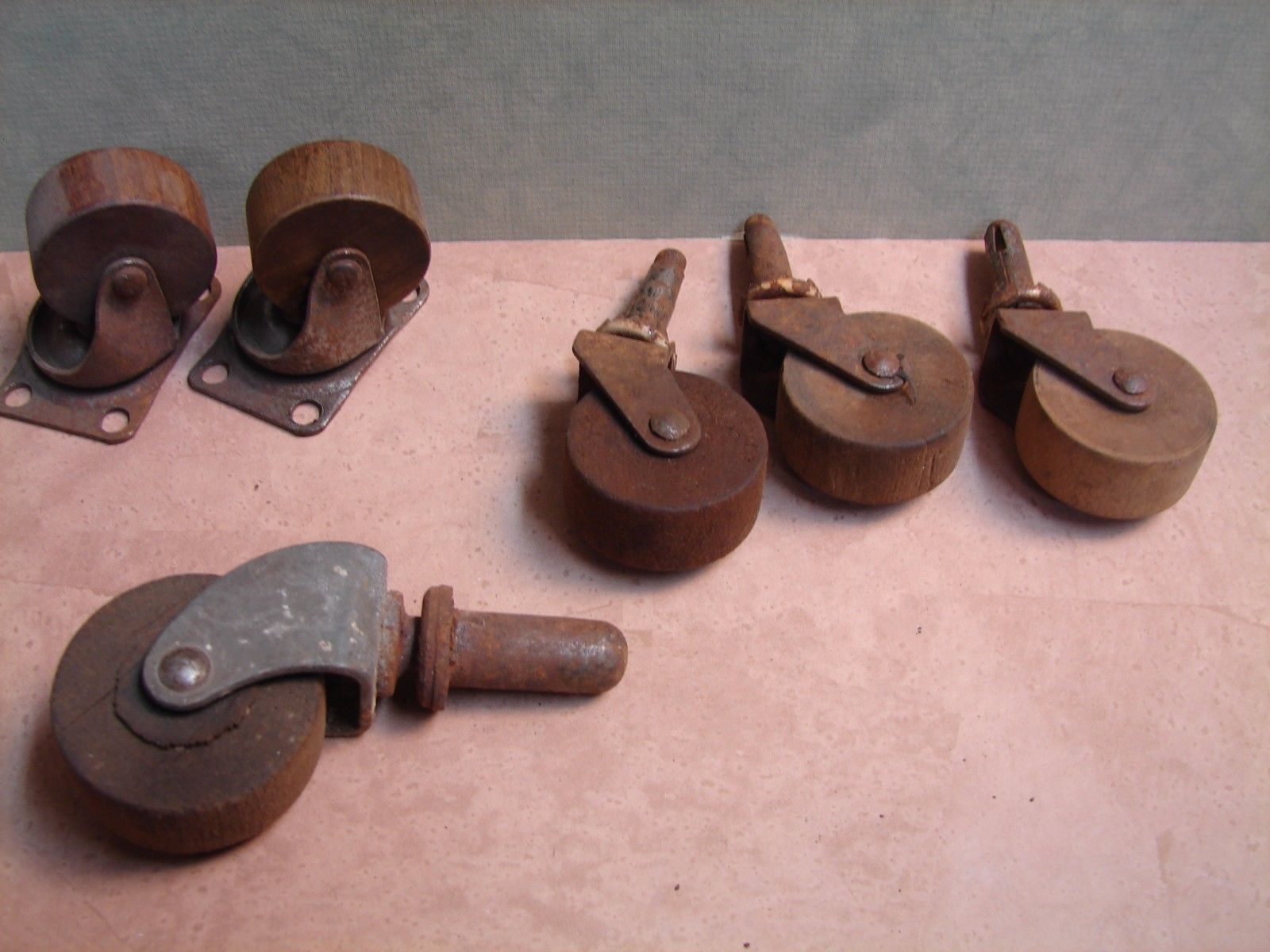 Title (ebay affiliate link): Lot of 6 Antique Vintage Wood Furniture Caster Wheels Misc. sizes 1091