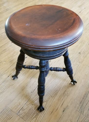 Title (ebay affiliate link): Antique Adjustable Piano Stool Seat Cha Parker Glass Claw Feet Mahogany