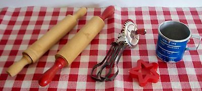 Vintage Child''s Utensils-Rolling Pins, Egg Beater, Measuring Cup, Cookie Cutter