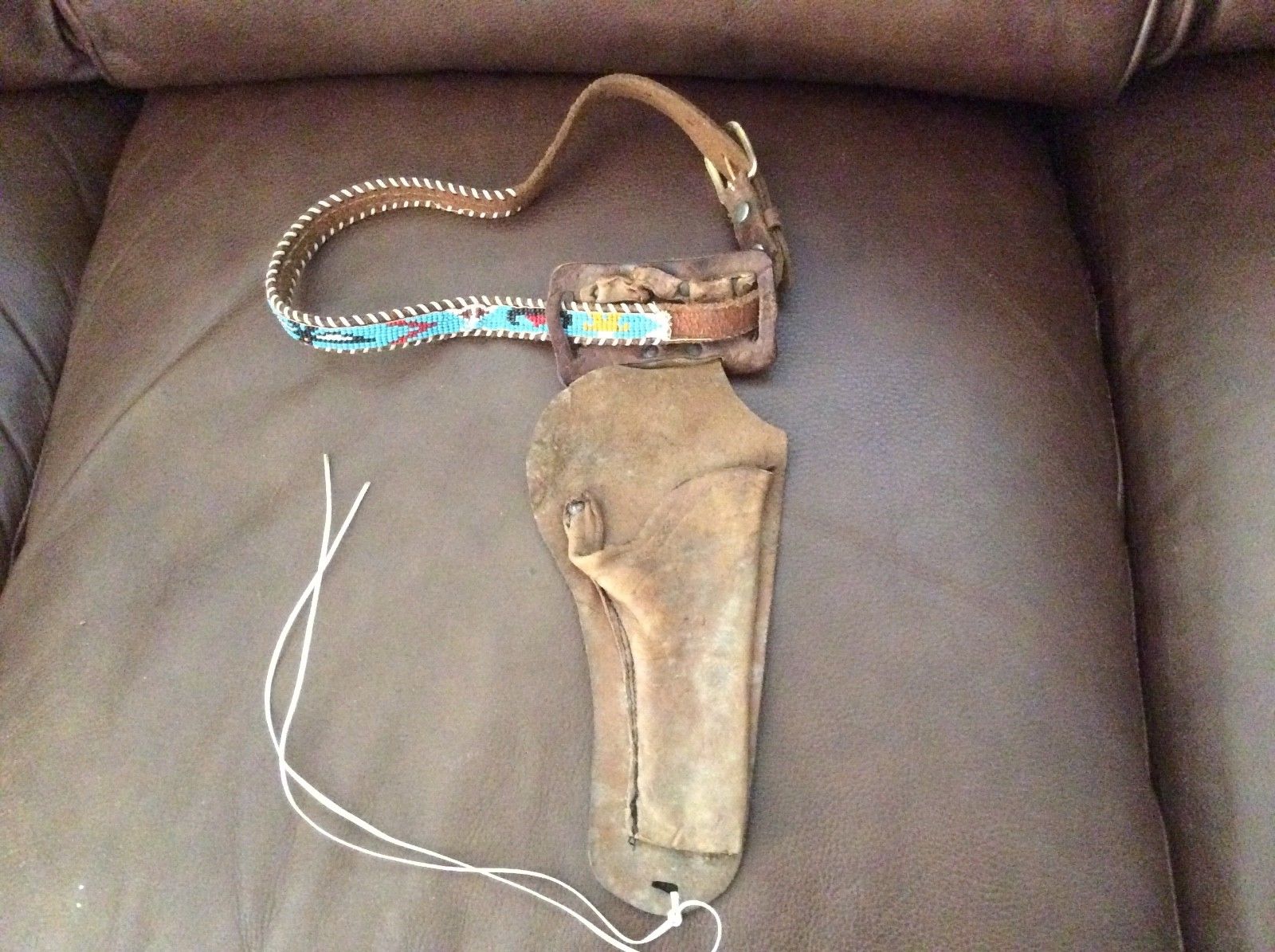 Title (ebay affiliate link): Vintage Leather Cap Gun HOLSTER with leather and Beaded Belt LOOK