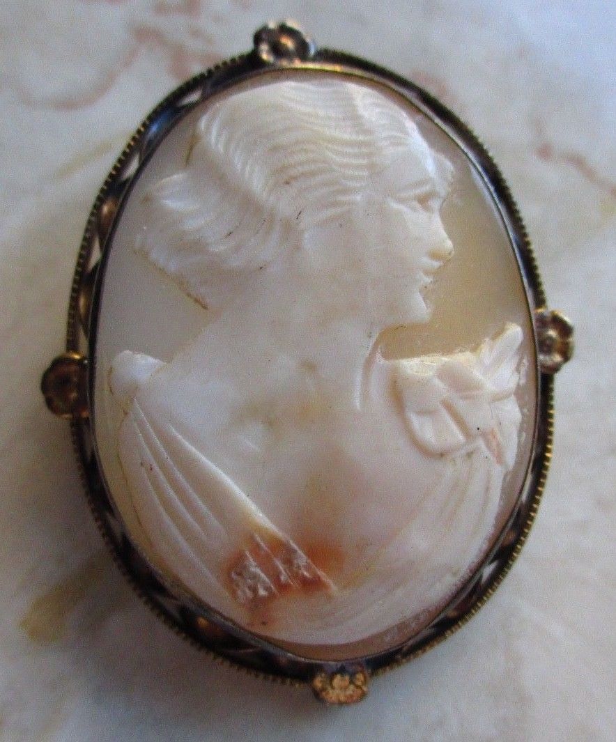 Title (ebay affiliate link): Antique Art Deco Estate Ornate Carved Shell Cameo Brooch/Pendant