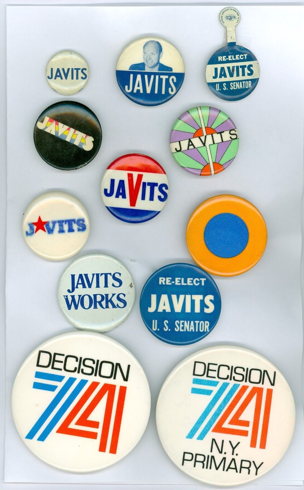 Title (ebay affiliate link): 11 Vintage 1970s New York US Senator J Javits Political Pinback Buttons &1 Tab