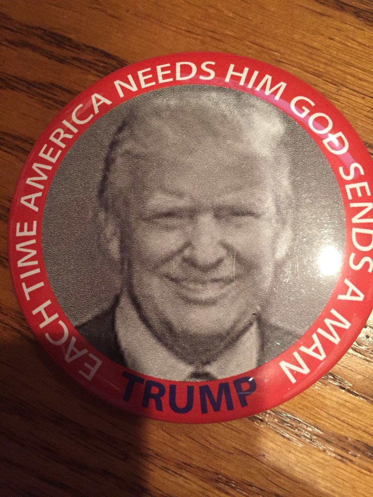 Title (ebay affiliate link): Donald Trump for President "God Sends A Man" button pin