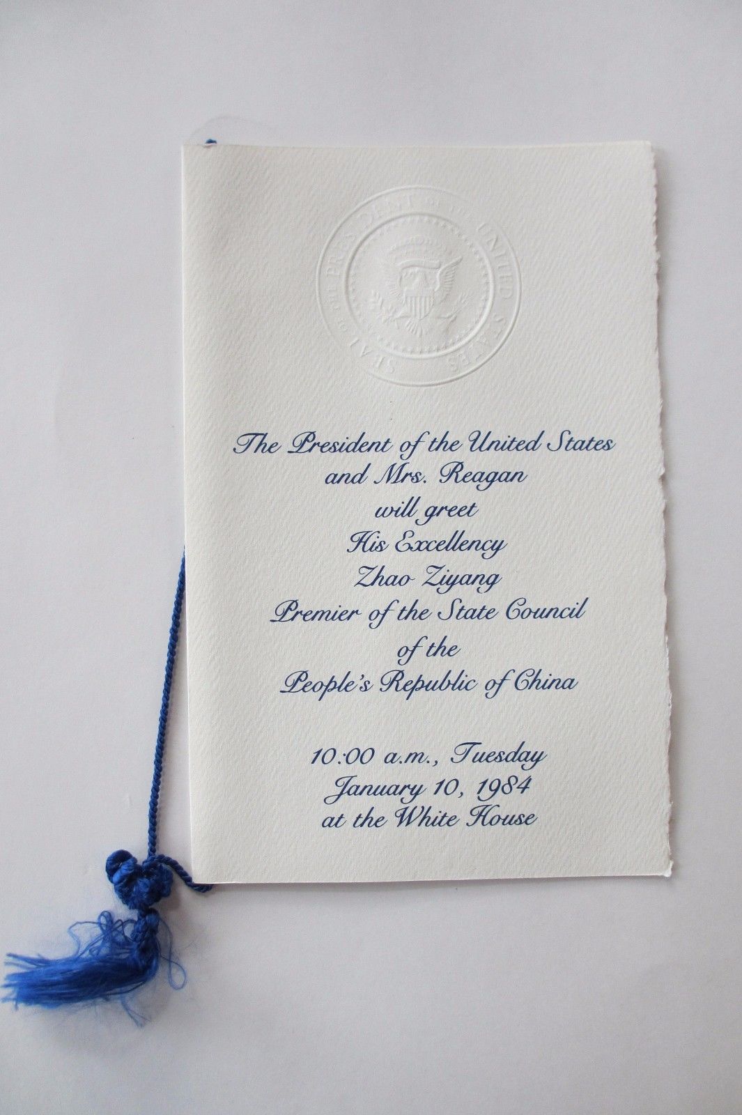 Official Reagan White House Program To Welcome Premier of China-Jan. 10, 1984