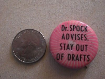 Title (ebay affiliate link): VINTAGE 1960''s "DR. SPOCK ADVISES,STAY OUT OF DRAFTS" PIN BACK BUTTON VIETNAM