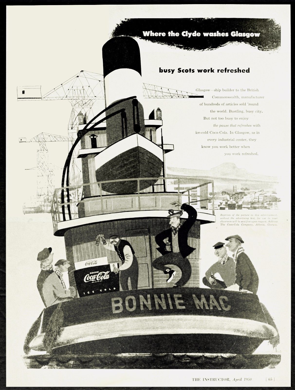 Title (ebay affiliate link): RARE 1950 COCA-COLA Glasgow Scotland Tugboat Coke Cooler Bottles Vtg PRINT AD