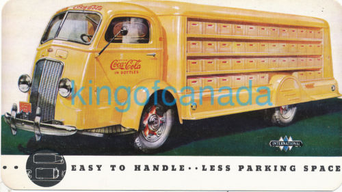 Title (ebay affiliate link): International Harvester Yellow Coca Cola Truck Advertising Postcard 1940