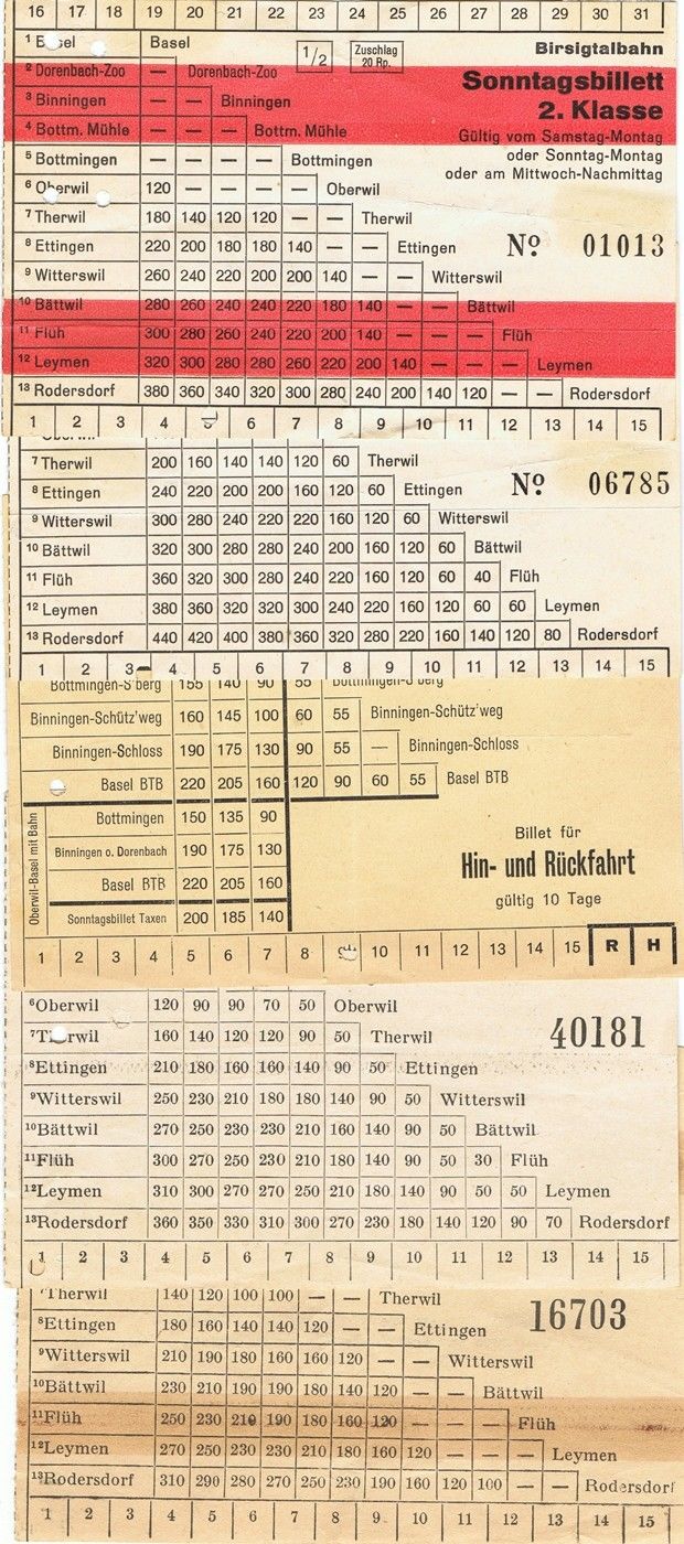 Railway tickets Switzerland Birsigtalbahn various unused issues
