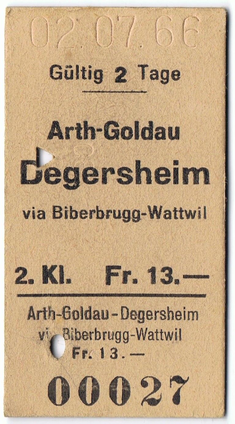 Railway tickets Switzerland Arth-Goldau Degersheim second class single 1966