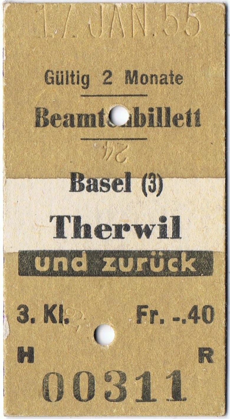 Railway tickets Switzerland Basil Therwil third class return 1955
