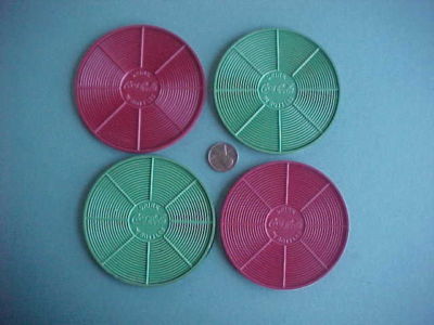 Title (ebay affiliate link): 1930-40s Era Coca-Cola Rubber Coaster 4 piece set-Coke!