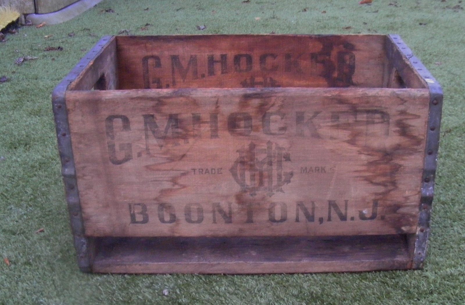 Title (ebay affiliate link): Antique G.M. Hocker Wooden 24 Bottle Soda Case Boonton NJ dated 1913